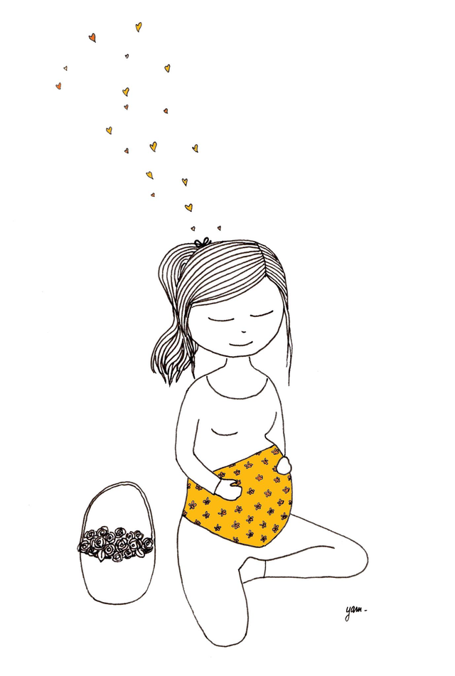 Carte PRINT pour annoncer une le début d'une magnifique aventure : "J'ai un cœur qui bat dans mon ventre" . Reproduction d'un dessin original.